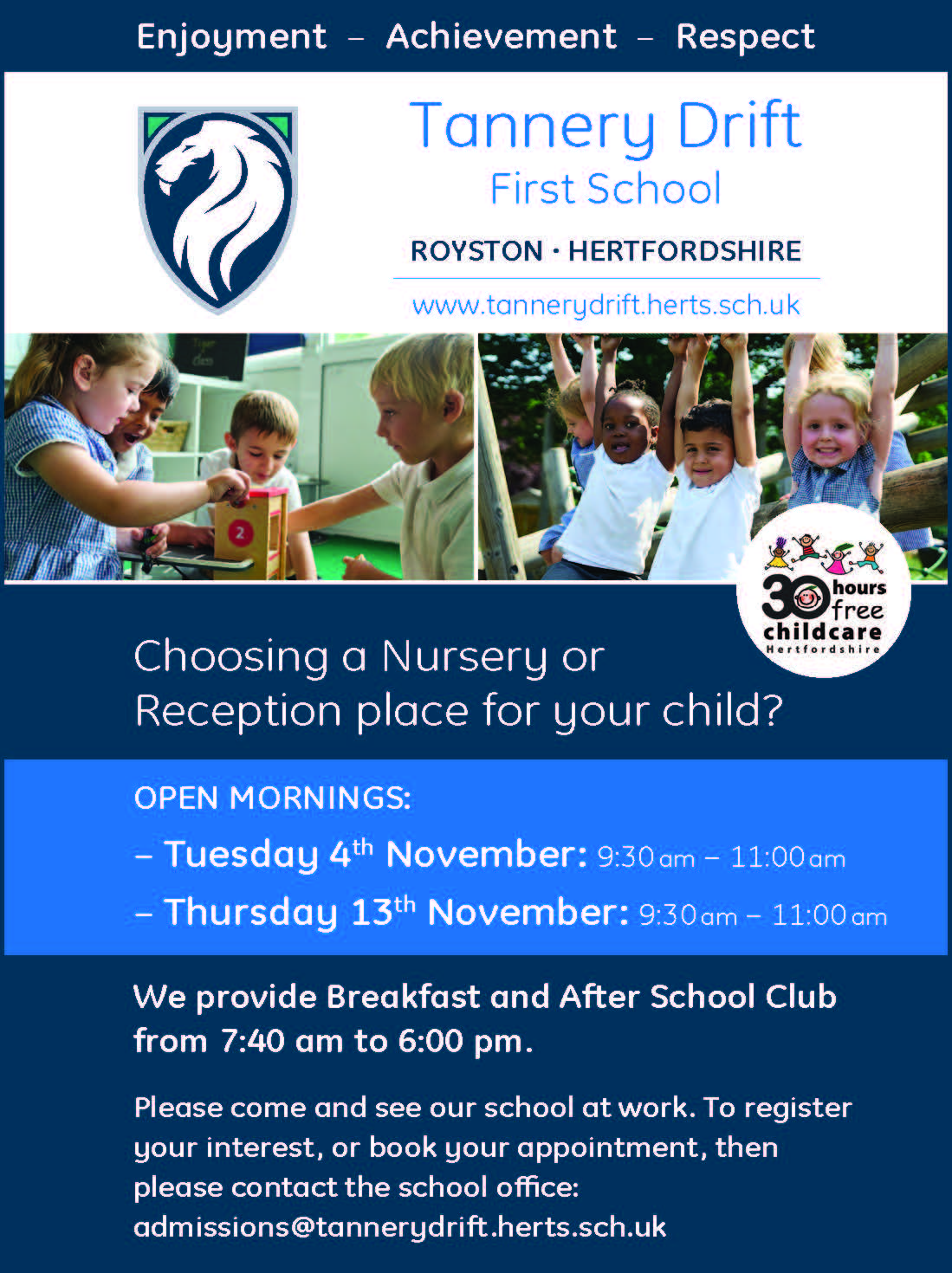 Applications for a place in the Nursery are made directly to the school. Please complete our online application form. Applications will be accepted until 15th January 2026 at 5.00pm. If you have any questions please contact admissions@tannerydrift.herts.sch.uk